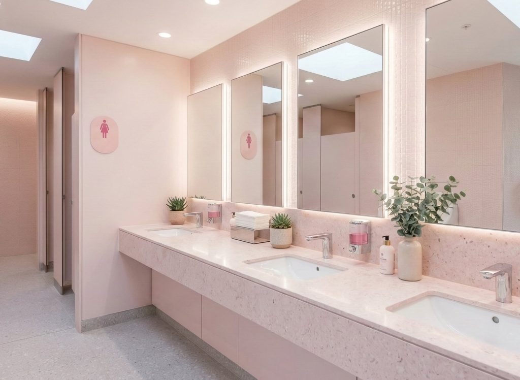 しばらくして、深呼吸を繰り返して個室から出た。 洗面台で顔を洗おうと手を伸ばした瞬間、 入口の自動ドアが開いて、彼女が入ってきた。